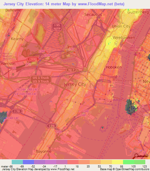 Elevation of Jersey City,US Elevation Map, Topography, Contour